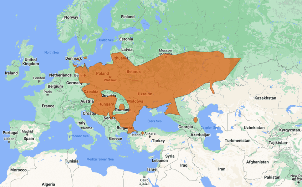 An introduced population exists near Beijing. This frog is mostly aquatic, inhabiting warm, humid regions at high elevations. They may be found in a variety of different habitats, such as spruce, pine or deciduous forests, river valleys, swampy bush lands, and open meadows. They spend most of their time soaking in shallow pools.