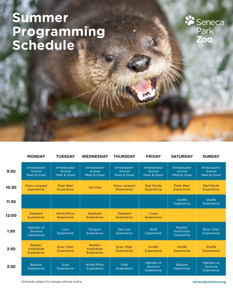 Summer is here and so is our summer programming schedule. Experience animal feedings, enrichments, keeper chats, conservation talks and more and plan a truly memorable Zoo experience. Check out the schedule below (Printable PDF) to see some of what we have in store for you to plan on Memorial Day Weekend through Labor Day and reserve your tickets ahead of time here!